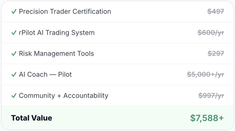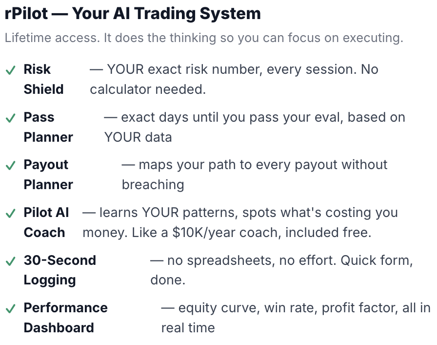 The system personalises to YOUR numbers. And if after 30 days, applying what you've studied and logging trades within your rPilot subscription you're not trading with more clarity and consistency, you get every penny back.